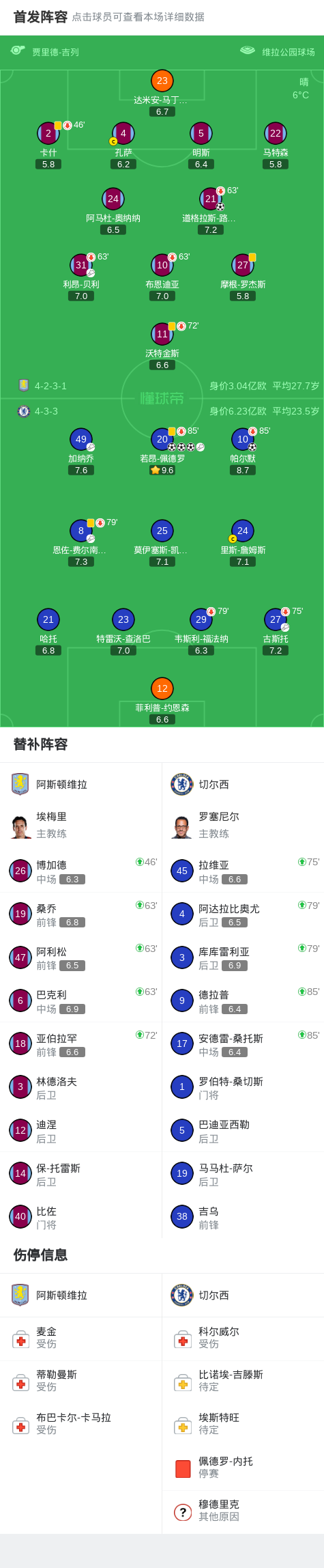 第2分钟,贝利助攻,道格拉斯-路易斯门前巧射破门,维拉1-0切尔西